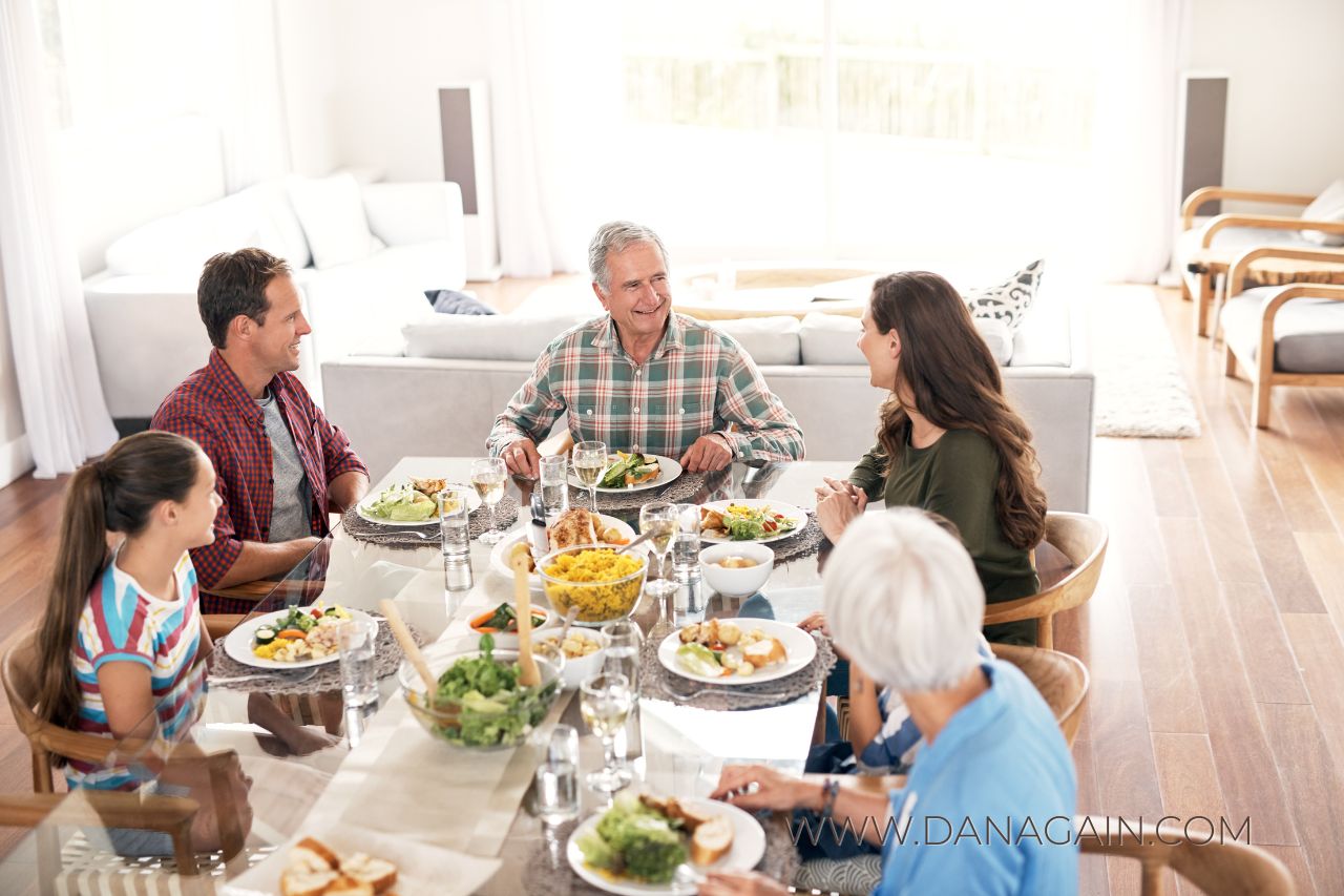At that moment, we looked into the house and saw a dining table with six people sitting down, waiting for the lovely lady to join them.